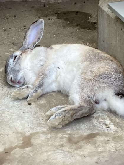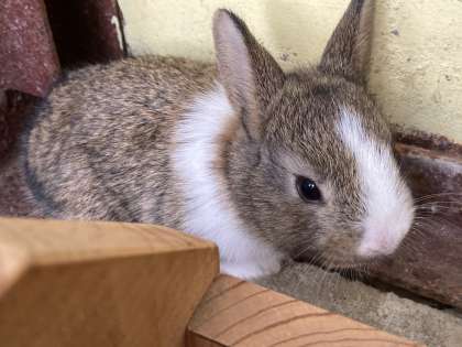 今朝,ウサギ小屋をのぞいてみると,子どもたちが巣箱のそとに出てかたまっていました。