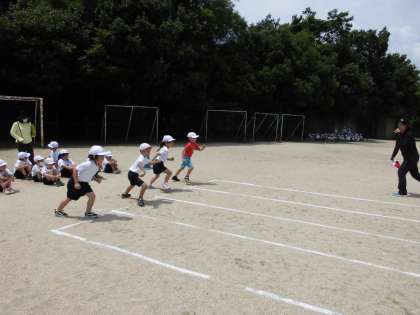 50メートル走を力いっぱい走りました。小学校のお友達と走るのは初めてでしたが,「楽しかったー!」ととっても嬉しそうでした。