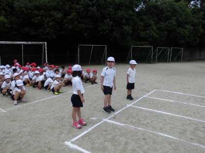 50メートル走を2回走りました。たけのこで毎日朝のマラソンを頑張っていることもあって体力がついてきているように思います。「速かったやろ!」と得意気に報告してくれました。
