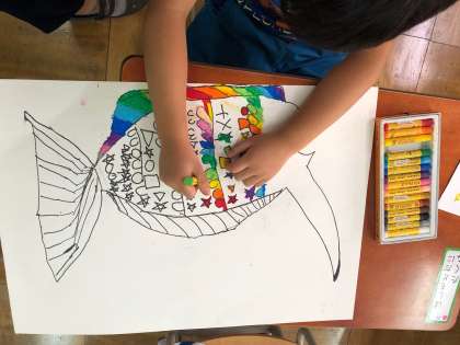 前回,魚にかわいい模様をたくさんつけたので,その一つ一つを丁寧に塗っていきました。