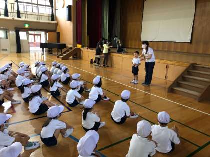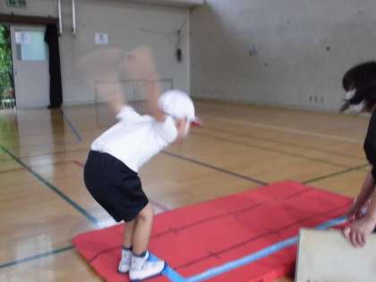 パプリカのダンスでは,ノリノリで踊ってくれてとっても可愛かったです。立ち幅跳びをした後に,学年のお友達にずっとできていなかった自己紹介をすることになりました。練習していたわけではないのですが,自分の名前や好きなことなどをしっかり発表することができていて偉かったです。