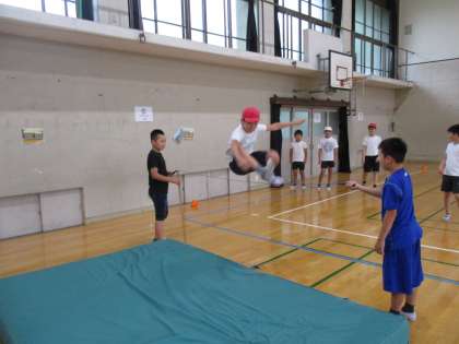 走り高跳びの練習ではジャンプする感覚や踏み切る足の確認など子ども達はそれぞれ練習に励んでいました。