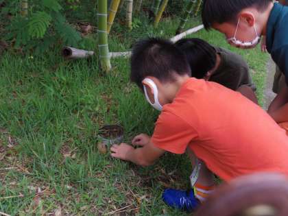 雲に覆われた空の様子,くもの巣や葉っぱの上に残る水滴がきらきらしている様子を見たり,雨上がりの湿った土に誘われてだんご虫やわらじ虫がたくさんいるのを見つけたり…。土がいつもよりふかふかしていたり,ということに気づく子もいました。登校の時に,かたつむりを見つけたよ! と思い出して話す子もいました。