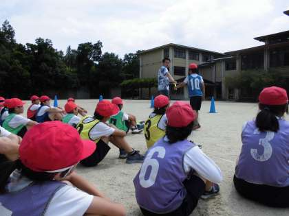 2回目のリレーの学習でした。バトンパスでは渡すときに声を出す,パスするときにも走るスピードを緩めず最後まで全力で走りきることなどに気を付けて走りました。チームで協力して,タイムを縮めていけるように頑張ります。