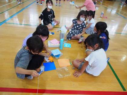 次は折り紙や紙飛行機遊び,けんだまの様子です。