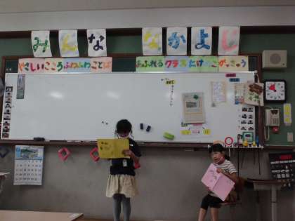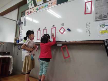今日の日直さんは「私が先生役するわー!」とやる気満々の様子。授業の挨拶だけでなく,めあてを黒板に書いたり他のお友達を手助けしたり…と大活躍の一日でした♪