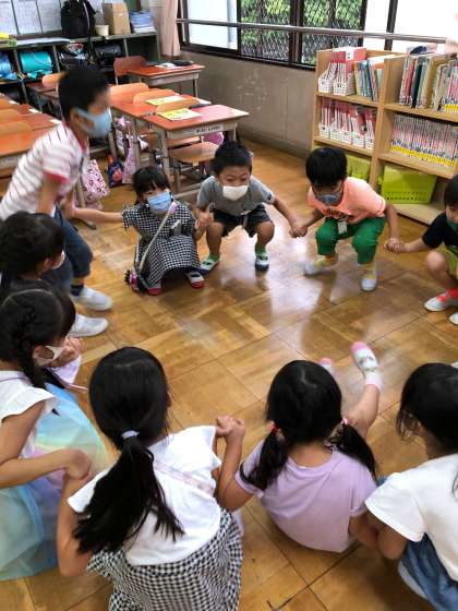みんな,おどりや遊び方をおぼえていて,だんだんリズムにのるのがうまくなってきたり,歌いながら遊ぶことができるようになったりしてきました。