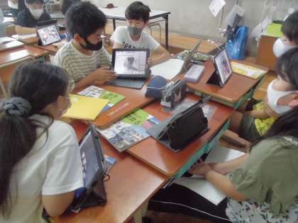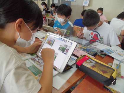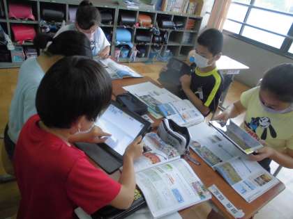 沖縄と北海道のどちらが過ごしやすいのかを班になり,調べていました。それぞれの県での気候の対策や生かした産業など多くの工夫がありました。