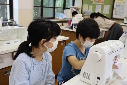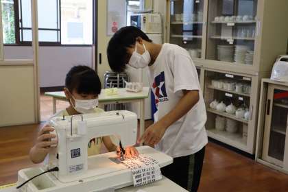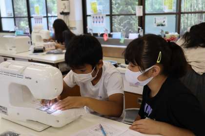 ナップサックつくりは昨年のランチョンマットに比べて布が分厚くなるなど難易度が上がります。そのため今日は布を使ってミシンの練習をしました。