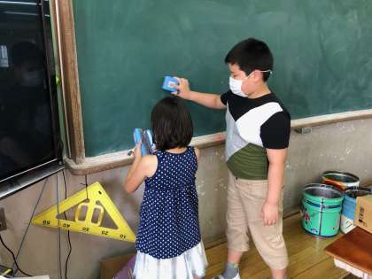 6年生のお兄さん,お姉さんが手伝いに来てくれて,掃除の仕方を教えてくれたり,教室や廊下をきれいにしてくれています。