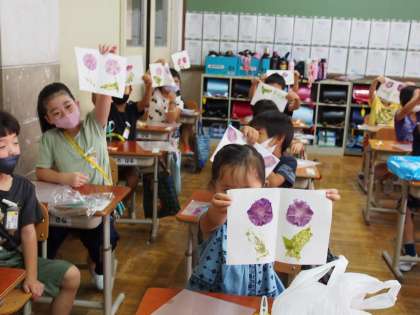 夏休み中もしっかりお世話をしたので,きれいな花をたくさん咲かせてくれたようで,みんな冷凍保存していた花を嬉しそうにもってきていました。
