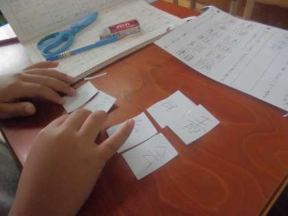 今日の国語の学習では「へんとつくり」の学習でへんとつくりパズルをしました。