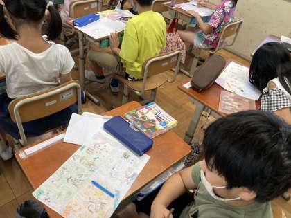 お話の絵の下書きをどんな絵にしようか悩みながら頑張っています!