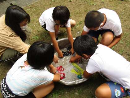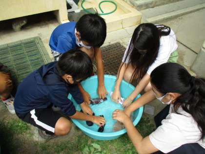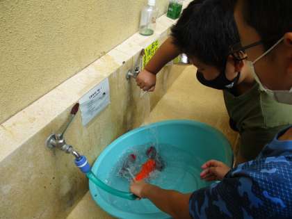 適度な洗剤量と水を使うときれいに汚れが落ちるということを実体験を伴って学習しました。ゴシゴシと懸命に手洗いする姿が印象的でした。一日の靴下の汚れがきれいに落ちました。