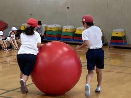 藤りんピックに向けて3年生と大玉転がしをしました!