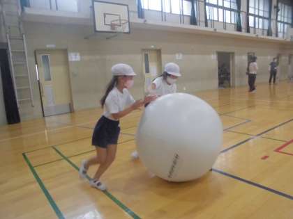 選択種目の玉入れ,大玉転がし,つなひきの動きを確認しました。