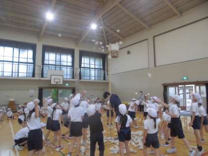 今日は残念ながら雨だったので,体育館で活動しましたが,本番さながらの盛り上がりでした。