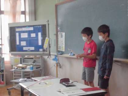 それぞれの班で話し合った議題について,クラス全体に向けて報告をしました。学校生活の現状と問題点についての解決方法を発表し,これからの生活に結び付けようとしていました。