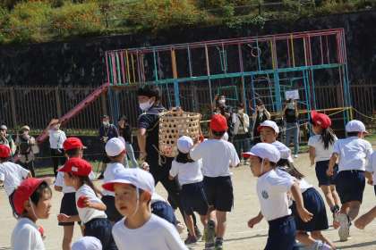 最後は玉入れです。よーく狙って投げて,たくさんの玉をかごにいれることができました。
