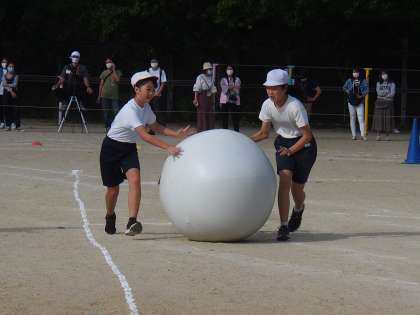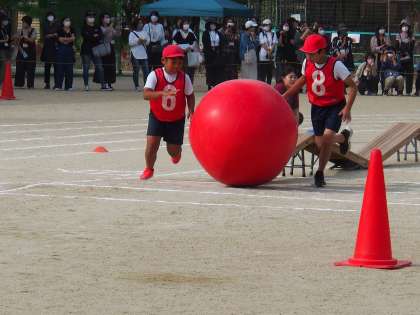 次は大玉リレーです。今年は5・6年生合同チーム。