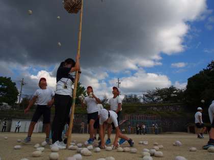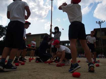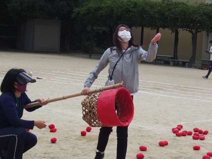 藤りんピックの選択種目「玉入れ」をしました。各色で作戦を練って玉入れをしました。協力して多く玉を入れていました。