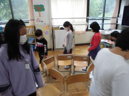 2年2組では,椅子取りゲーム,ババ抜き,何でもバスケットを行っていました。