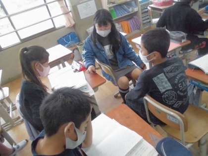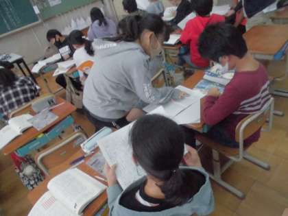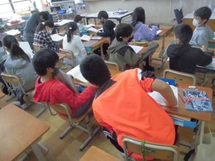 説明文を読んで筆者が伝えたいことを要旨をとらえて文に書き表していました。また,お互いに書いた文を読み合い,自分の意見に付け加えていました。