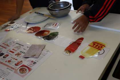 今回は自分の食べる分は自分で調理を行います。材料や手順を今回のエア調理で学習しました。実習の当日が楽しみですね。