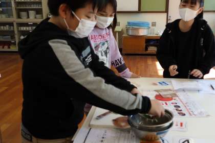 この日の家庭科は調理実習に向けて練習を行いました。