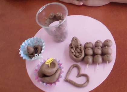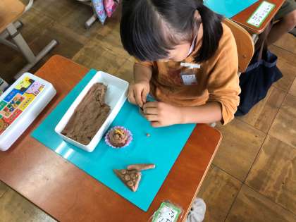 粘土を使って,小さいタピオカやいくらなどを作るのは難しかったようですが,一人ひとりが工夫して作ることができました。