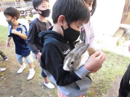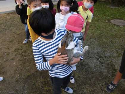 今日は飼育委員さんによる うさぎとのふれあいを行いました。