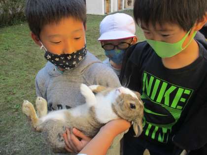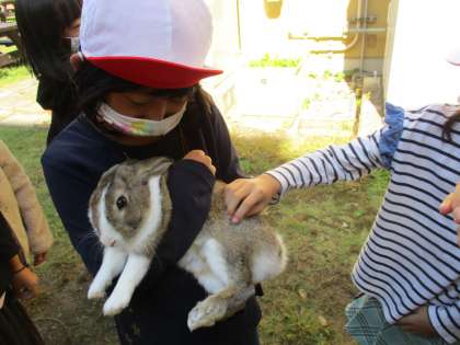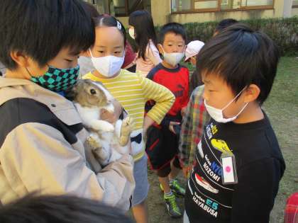 今日の中間休みに,飼育委員のお兄さんお姉さんによる「うさぎとのふれあいタイム」がありました。