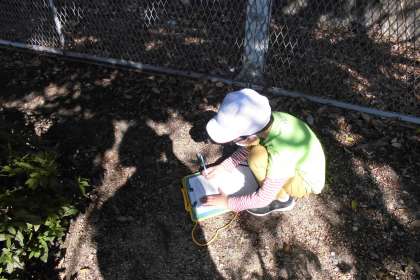 コスモスや色づいた葉,エノコログサやバッタなど,いろいろな秋を見つけることができました。