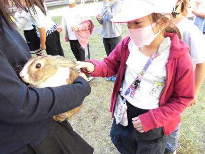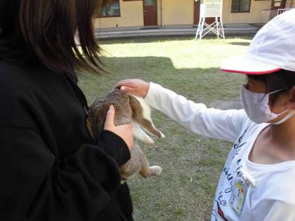 以前,生活の学習でうさぎと触れ合っています。そのせいか,抱っこをしたりなでたりするのが上手で,うさぎたちも気持ちよさそうにしていました。