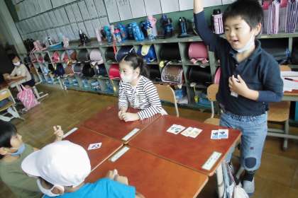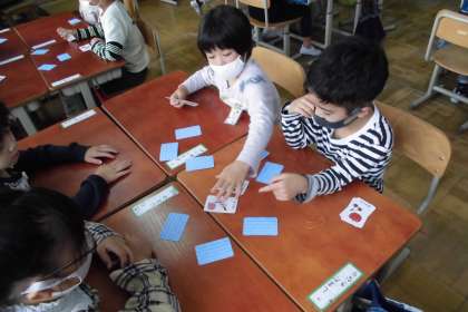 カードをめくったら,英語で色名を言うこと,そろったときにも英語で色名を言わないと取ることができないことなど,ルールを守って楽しく活動できました。