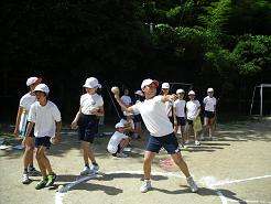 5・6年は運動場と体育館でスポーツテストに取り組みました。上体起こし・前屈・反復横とび・立ち幅跳びなどは体育館で、運動場ではソフトボール投げにチャレンジしました!