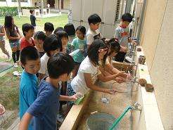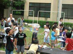 たけのこシャボン玉屋さん、今日は3年生の番です。案内の放送とともに中庭に集まって、思い切り飛ばして楽しみました。さすが3年生、後片づけもたけのこ学級と一緒にちゃんとできました!