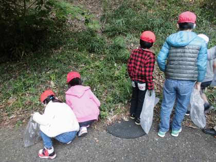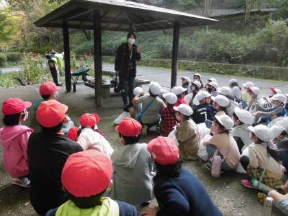 北堀公園では,緑の会の方々をゲストティーチャーにお招きして,秋の生き物や植物と触れ合いました。拾ったどんぐりで作ってもらったドングリゴマは,現在たけのこ学級で大ブームです♪