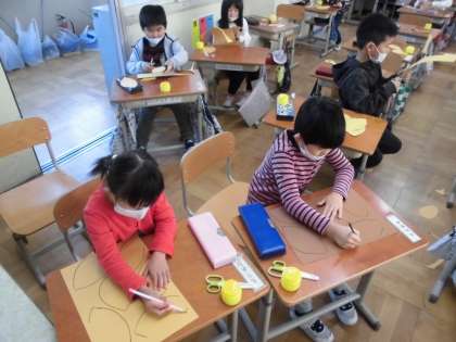 2年生は,学習発表会で使用する背景作りに取り組みました。自分たちで一生懸命つくることで,練習へのやる気もアップします!