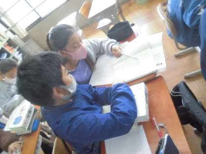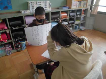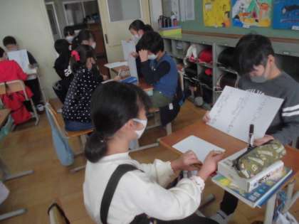 実習生が国語の授業をしました。同じ読み方の漢字を集めて熟語をつくり,クイズを作成していました。漢字辞典や教科書を使いながら多くの漢字に触れあっていました。