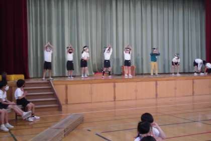 本番のようにはじめの言葉から劇の最後まで,とおし練習をしています。自分で考えて動いたり,出番でない時も静かに待ったりすることができるように,当日お家の方にかっこいい姿をみていただくことを目指して練習をがんばっています!