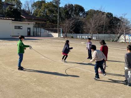 大縄を回すのは大変でしたが,だんだん上手になり「ねこのめ」で縄を両足ではさむこともできるようになってきました。