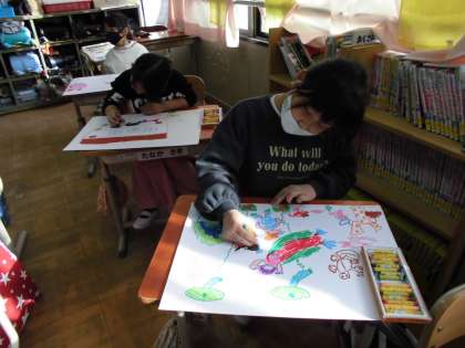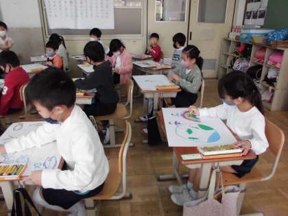 今日の図画工作科は『のってみたいな いきたいな』。行きたいところや,乗ってみたい乗り物を考えました。