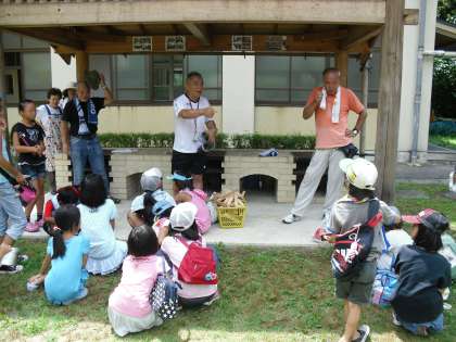 学校の中庭で少年補導委員会主催のディキャンプをしています。