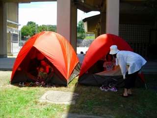 中庭にはられたテントの中,暑いようですが,中はそれほどではないようで,ごはんが炊けるまで中に入っている子ども達もいました。