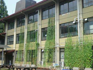 夏休み後半に向けて残暑きびしい毎日ですが、中庭の緑のカーテン、アサガオがどんどん伸びて3階の6年の窓まで届きました。明日17日水曜日より学校は平常通り開いています。