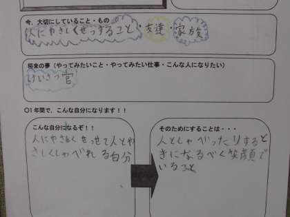 「今の自分を見つめて」と「1学期の目標」に分けて考えました。