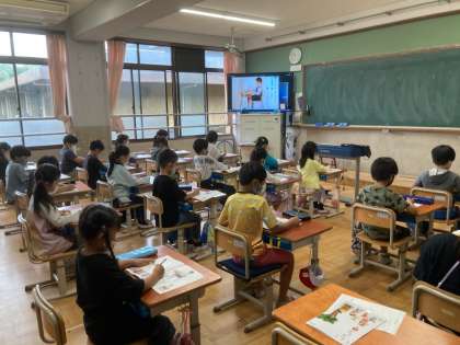 「こしはピン 足はペタ ぐう1つ」 の三つの合言葉を知り,まずは正しい姿勢をたしかめました。授業中にノートに近づいて書く子。体をななめに傾けて書く子。ときどきいます。授業のはじめに毎回この三つのポイントに気をつけて授業を始めたいと思います。ちなみにぐう1つというのは,机とおなかの間と椅子と背中の間をぐう一つ分あけることです。