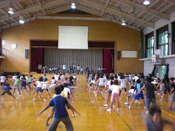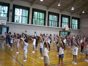 中間休みに、全校ダンスの練習を体育館で行いました。初日の今日は、3年・4年の中学年が練習です。初めてなのに、すぐに振付を覚えてリズムに乗って踊ることができました。中学年が全校ダンスをリードしてくれそうです。