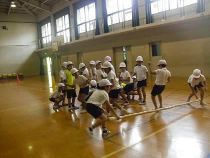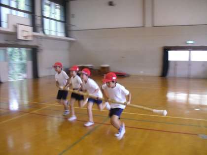 運動会に向け、学年の競技の台風の目を練習しています。赤組も白組も一生懸命走っています。練習を始めたころは赤組優勢でしたが、練習を重ねるにつれ、白組がガッツでタイムを縮めてきました。当日はどちらが勝つのか、ぜひ会場でご覧になってください。